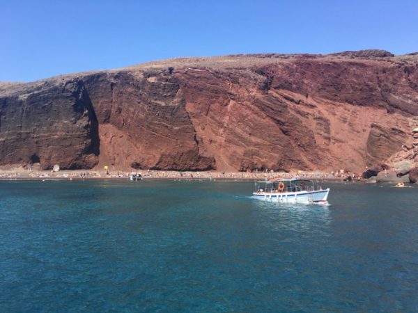 » While Santorini certainly has unique and picturesque beaches, you won’t be anywhere near the sea if you’re staying in any of the towns on the caldera; you’re way up a massive cliff.